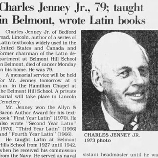 Most know that the Jenney Latin Series was a language learning program designed to educate high school students. Originally published by Allyn & Bacon in Boston, the four-volume Latin program series would see four major revisions, beginning in 1953 and ending in 1990 under Simon & Schuster’s publishing division Prentice-Hall. Some would not be surprised to learn that the Boston Latin School, the oldest existing school in the United States established in 1635, uses the Jenney Latin Series to this day. Nor would anyone be surprised to learn that Belmont Hill School, established in 1923 in Massachusetts, where Charles Jenney Jr. served as head of the Latin department from 1927-1981, also still teaches Latin from his textbooks. Undoubtedly, the Jenney Latin Series strictly adheres to the traditions of a classical education, which can trace its educational lineage back to British America and England. Few would be astonished to learn that the Jenney Latin Series had become a leader in the language learning industry and, for a couple decades, the most widely used Latin textbook series in the United States. But very few know how the Jenney Latin Series came to dominate American high schools during the 20th century.